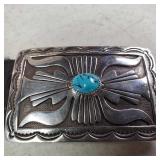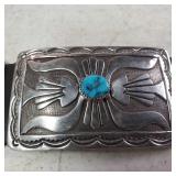 Natural High Grade Royston Turquoise Sterling Silver Naja Necklace Unsigned Vintage Pawn