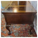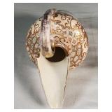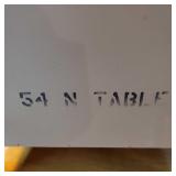 28" tall with 39" x 29" white marble turtle back top with beveled edge raised on 4 column pillar base with center place accent shelf and 4 fiddle head curved feet {Local pick up only or buyer arranges third party packing and shipping} 596