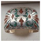 1" wide coral & 1.25" wide coral and turquoise - both are unmarked but guaranteed to be sterling {in house shipping available} 15