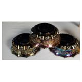 7" triangular and 10" rhomboid studio made Masonic, 9" square black Padilla Cigar Company and 10" oval green by Craftsman's Bench ceramic cigar ash trays, 9" Romeo Y Julieta portrait medallion pail from glass humidor with snap lock lid full of stick match boxes - see photos - in house shipping available 604
