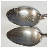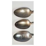 6 spoons of .835 silver with spear head finial delicate stylized flower etch, (light initial marks and 1899 date marks on back of finial), twist stem handle and pointed bowl (very light gold wash, one with minor dent) - in house shipping available 23