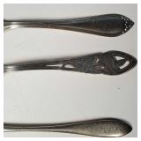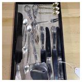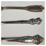 6-Dinner Knives, 6-Dinner Forks, 9-Teaspoons, 1-Butter/Cheese Knife, 1-Pickle Fork. 18.905 ozt without knives, monogram "B" on all but 5 spoons. {in house shipping available} 31