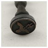 Good Condition see photos, darkened silver frame, signed Gemco, 6 1/2" tall X 5 1/2" wide, 12" handle, {in house shipping available} 20