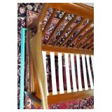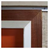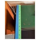 wood framed with blue flowers 21.5"x17" (2 cracked panels) & 16.25"x21.5" Arts & Crafts window (1small crack in red) {BUYER ARRANGES PACKING & SHIPPING OR LOCAL PICK UP} 633