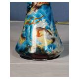Art Deco Duncan and Miller Black Glass Rocket Vase with Geese Herder Boy Sterling Decoration