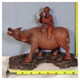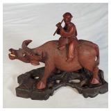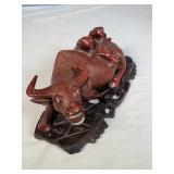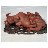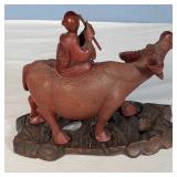 4 Hand Carved Water Buffalo with Rider Figures on Individual Stands
