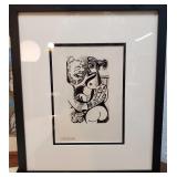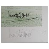 British-Israeli artist, Martin Holt, born in London and educated at University College, led an illustrious career as a Tel Aviv-based architect before moving to the fields of painting, caricature and cartoon. Based on the belief that humor can bind together the various social communities found in Israel, Holt's works uniquely portray various elements of Israeli society and have been exhibited throughout the world. "The Swimmer" 185/300 pencil signed with embossed stamp and "Hasidic Tennis' Special Edition 218/300, both pencil signed with embossed stamp {will ship in house but due to glass will be over size box} 615
