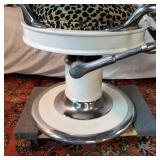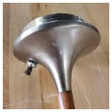 This is Laurel Lamps Company’s sought-after and iconic frosted mushroom shade on brushed chrome tulip base floor lamp, in a very unusual and elegant color combination. The base and top are Brushed Chrome , with a walnut veneered iron stem between, improbably supporting the frosted glass globe.. A 3-position switch allows different lighting levels. Retains Laurel Lamp Co. label. {local pick up or in house shipping available BASE AND SHADE WILL BE SHIPPED IN SEPARATE BOXES OR YOU THE BUYER WILL ARRANGE 3RD PARTY PACKING AND SHIPPING} 2