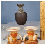 Pair of 12" Porcelain Bisque Piano Babies and 8" Bagpiper German Spill Vase