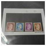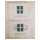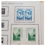 1958 White Ace Historical Album for the Commemorative Stamps of the United States incl protective mount 1920 Pilgrim Tercentenary Series 548 Mayflower 1c, 550 Signing of Compact 5c, 1923 Harding Memorial 611 double imperforate (610 and 612 flat perforation 11 and rotary perforation 10 also present and glued to sheet, 833 Harding $2 with base paper in celo pack attached also added to this sheet), 1924 Huguenot-Walloon Tercentenary Series 614 The New Netherlands 1c, 615 Fort Orange 2c and 616 Mayport 5c (additional loose 616 in celo envelope), 1925 Lexington Concord Series 617 Cambridge 1c, 618 Birth of Liberty 2c and 619 The Minute Man 5c, Norse- American Centennial 620 Sloop Restaurationem 2c and 621 A Viking Ship 5c,and full album from 1926-1958 pages 10-81 (only missing page 11 White Planes Expo Sheet 290, and 5 of the Special Printing of 1935 doubles - 752, 758, 466, 767 and 768, I think, Spa and Tennessee State. Page 58 and 70), including Washington Bicentennial, Century of Progress including 2 full expo sheets, other expositions, National Parks, Famous Persons, Armed Forces, States, Conservation and so much more -full album stamps are lightly glued to page. Many are loose, should be removable without damage, all will remain untouched to keep from being damaged through rough handling and are sold as found. Part of 3 generation family estate stamp collection, meticulously kept - unused as placed by grandfather in albums - in house shipping available 639