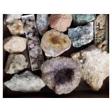 Great larger ore and mineral specimens filling 2 large flats including polished stone orbs, see photos for close ups and contents - {local pick up} 623
