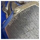 size 6 1/2, 5/16" wide band with cutting and blue enamel, signed Milor. 1.3 dwt total weight. {in house shipping available} 21