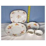 Shelley Thistle ribbed trio set, single ribbed white cup and The Foley China pre-Shelley WC mark ivy cup and saucer ( hairline in cup) Royal Albert Petit Point Chintz tea plate, 4 matching Taylor and Kent, 2 Royal Standard and Gainsborough violets teacups and saucers. Adderley Lawley cream and sugar, 20 pcs Krautheim Franconia Millefleurs Tea Ware (4 cups and 3 saucers, 2 dinner, 4 luncheon, 3 salad and 4 bread plates) and more - local pick up only 599