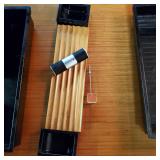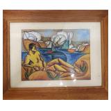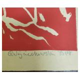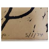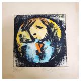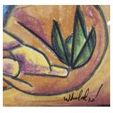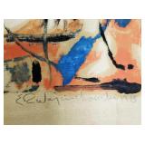 2 pcs- Warren (Frank) Wheelock (1880 - 1960) was active/lived in New York, New Mexico, Massachusetts. Warren Wheelock is known for Sculptor-abstraction, portrait. 1-Pencil on paper 33" X 18" unframed, signed Wheelock, 1- Framed Cubist colored pencil on paper sight 7 1/4" X 10", framed 13" X 17". 4 pcs un framed abstract art signed E R Wojciechowski and dated in the 70s, 1 - 1974 Rick Meheim? 8/20 imp 9 1/4" X 5 3/4" un framed. 1 - 16" X 12" colored pencil on paper illegible signature 1975, 1- un signed Picasso inspired print 506/666. {local pick up or in house shipping available} 621