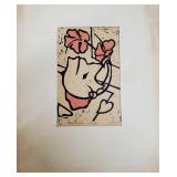 Born in Liegnitz, Poland in 1951, Zamy Steynovitz (1951-2000) spent the first few years of his life in Poland before immigrating to Israel with his family in 1957. When he was a child he developed his interest in art, beginning his artistic endeavors before leaving Poland.Her\ studied at both the Art School in Tel-Aviv and at the Royal Academy of Arts in London, and developed his artistic style through his travels around the world, exhibiting internationally. Although he frequently featured Jewish themes and tradition, he was also inspired by other subjects, such as his time in South America, still-lifes, Paris, and landscapes. Much of the evolution in his work was related to his use of color and texture, with brighter and more vivid hues and contrasts. Known as a passionate supporter of world peace, Steynovitz had many admirers in the social and community circles associated with the Norwegian Nobel Institute, and aspired to become acquainted with such Nobel Peace luminaries as Anwar Sadat, Menachim Begin, the Dalai Lama and Desmond Tutu, among others. A meeting with Pope John Paul II at the Vatican, where they had a wonderful conversation in their native Polish tongue, was one of the highlights of Steynovitz's life. Sadly, he passed away at a young age in September 2000, leaving behind a prodigious body of work that is extremely collectible and sought after worldwide.Image inspired by Marc Chagall with dove and marriage symbolism, matted under plexiglass in 33"x 40.75" frame, sight: 21.5"x28.5" {in house shipping available in oversize box} 612