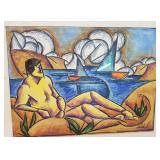 Hegina Rodrigues (Brazilian American, born circa 1960). Original abstract expressionism painting on canvas, large figural painting signed Rodrigues to lower right side - unframed 29.5"x40" {in house shipping available} 10