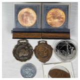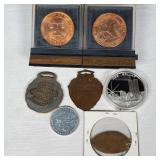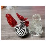 4 3/4" Baccarat Peacock, 3 Millefioris including Perthsire with P center cane (Crieff Scotland), 5" bull's head signed Kristaluxus, Goebel pincher bug relief, and Shriner's - see pictures for details and sized - in house shipping available 611