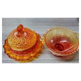 amber glass with button cushion bottom and lift top - in house shipping available 35