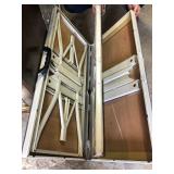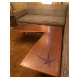 Heywood Wakefield Mid Century Modern Count Sakhnoffsky Birch Kneehole Desk 1950s Heywood Wakefield Boomerang Corner End Table - platinum Heywood Wakefield Wishbone Step End Tables and Coffee Table - platinum Mid-Century "Pagoda Style" arched 2 Piece Sectional Mid Century Lane Boomerang Coffee Table and matching end table Airlite Aluminum card table and 4 folding chairs