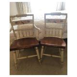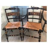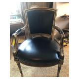 More Furniture Pair of Painted Regency Chairs Historic Charleston Collection by Baker Furniture Hitchcock Signed Stenciled Black Harvest Slatback Captains Chair and Side Chair Hitchcock Signed Stenciled Cream and Gold Maple Captains Chair and Side Chair Maison Jansen Style Glass Brass Coffee Tables Henredon end tables, Schoonbeck Armchair, Leather Inlaid Kneehole Desk, Campaign Style Drop Down Chest, Hollywood Regency Style glass top coffee table, 2 piece white sectional...