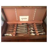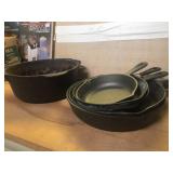 KITCHEN Towles stainless 18/10 "Stockholm" 53 pc set. Revere Ware cookware including Revere Ware large domed stainless steal roasting pan Pyrex Daisy Citrus Orange Mixing Bowl 2.5 QT #403, Hull blushing apple cookie jar, Sapphire Blue Philbe pattern, 50's Everedy Co. Stainless Steel Cake Carrier with Sliding Lock Lid, 50's chrome cover cake dish glass knob, vintage Metal Chrome Canister Set, Sapphire Blue Philbe pattern refrigerator dishes, Case Stag handles carving set, Griswold and Lodge cast iron pans...