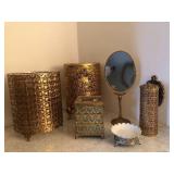 VINTAGE GLASSWARE Waterford - "Castletown" and "Colleen" Stemware, Barware and Decanters... Waterford Crystal Biscuit Barrel Vintage Cookie Jar, Waterford Ship's Decanter, Cruets, Candleholders, Music box, Ashtray... Georges Briard signed Mid-Century Wet Your Whistle Highball Glasses set of 8 Mid-Century multi colored rainbow glasses with twisted stems - set of 6 Signed Flora Naranjo Santa Clara black pottery Candlewick, Royal Doulton, Swarovski, Silver Plate Tea Set, Sterling, Pewter...