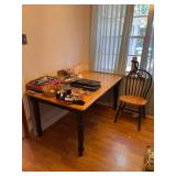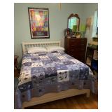 Contents of House and Garage includes: Mahogany bedroom set-full bed, 2 night tables, 2 chests, Inlaid Mahogany sideboard, Heart back chair, dining table & chairs, white headboard and chest, LG front load Washer & Dryer and refrigerator, sofa, loveseat, kitchen wood table, file cabinets, pair stacked lawyers bookcases, executive desk, large chair with ottoman, drafting table, mahogany desks, bookcases, recliner, kitchen table, Panasonic large flat screen tv, Telestar by Meade telescope Beatles posters and monolopy game, Fender amp & Squire Strat Fender guitar, Sewing, Crafts, Kenmore sewing machine, kitchen appliances, pottery, cd/dvd, Ladies clothes, purses, jewelry, guitar. old books, china, pottery, kitchen cook ware, Lamps, Electronics, Lenox china Church, Noritake and Limoges China sets, flatware, cameras, numbered prints, linens, lamps. Games, kid toys, Electronics, limited edition Christmas ornaments, Christmas and Fall decorations, Dog accessories, nice metal dog/child gate, large crate, dog walk ladder Garage: drills, miter saw, sanders, compressor, power tools, hand tools, ladders fishing, golf clubs, bicycles,