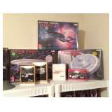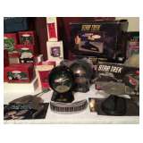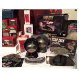 Star Trek collectible watches, two Star Trek Communicator Universal Garage Door Openers, Star Trek Klingon D7 Battle Cruiser, many Star Trek Enterprise plastic assembly kits, Classic Star Trek 30th Anniversary Series Dr. McCoy's medical kit,