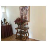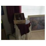 Oak kitchen table with 2 leaves Misc. Pots and pans Coffee Pot Toaster Roaster Silverware 8 place setting Spring Time China glass ware Franciscan platter CD’s Tech, Sony & Hitachi Electronics Floral Lazy Boy Couch Floral Lazy Boy Love Seat Round coffee table w/glass & wood top 2 Scrolled wood side tables Floral arrangements Decanters – crystal Framed artwork Christmas décor Kenmore Refridgerator Patio furniture Ladder Cream Couch and Chairs Coffee Table wood iron & glass Carved end tables Carved wood Dining Table with 6 chairs – upholstered Ornate glass hutch – 5 shelves Assorted silver plate serving sets Lamps Artificial plants Oak sofa table Broyhill Queen 4 Poster Bed – walnut Broyhill End Tables – walnut Broyhill Dresser with mirror – walnut Samsung Flat Screen Plasma TV Wood Shelves Accent tables Flip Top Walnut Extending Secretary Desk Queen Mattress and Full Mattress Steps for bed Assorted books Full size bed frame Night stands Dresser w/mirror Highboy dresser Wood desk Vacuum – Oreck File cabinets Bassett Dresser Large Accent mirrors 50’s Kitchen Table and 6 chairs Treadmill Exercise bike High chair Printer, scanner, fax, copy machine Dell monitor & keyboard & speakers Tupperware – great shape! Brother sewing machine Cornice for windows Deborah K Ellis Artwork |