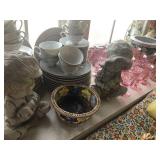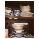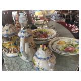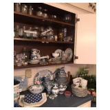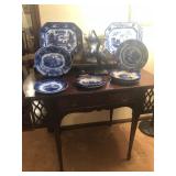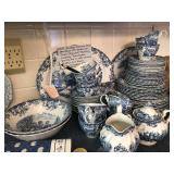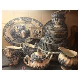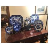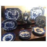 - Late 1800’s Flow-blue serving platters, plates, and teapot;