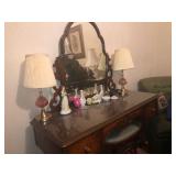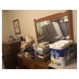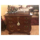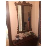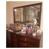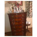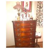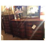 - Antique Drexel serpentine-front mahogany dresser, mirror, and matching 5 drawer lingerie chest, very good condition.