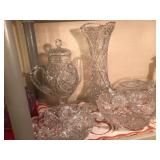 - 1920’s cut glass large tall vase, bowls and more;