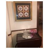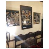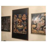 - Vintage framed silk screen cloth wall hangings “Rama in Chariot” and “Rama holding snake”;