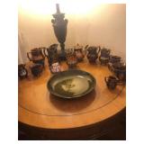 - Set of 10 hand-etched large pedestal bowls;