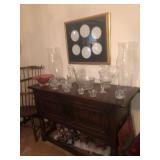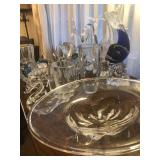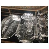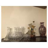 - Set of elegant etched fine crystal all matching with pitcher, candleholders and plates;