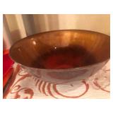- Mid century modern enameled copper bowl signed by noted Lawrence Deverell (1908-1999);