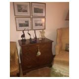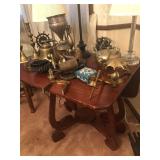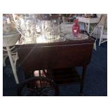 - Antique Drop-leaf Bar/tea Cart with removable glass tray and large wheels;