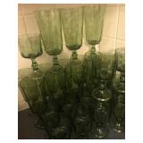 - Vintage 24Kt gold rimned crystal water glasses, wine, liquors, 6 sizes 67 pieces;