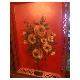 - 2 antique handpainted metal towle trays;