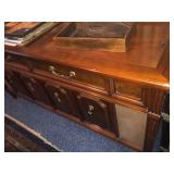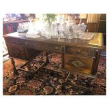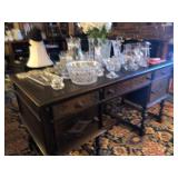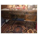 - Antique hand-carved “partner’s” desk, finished on all sides;