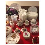 - Set vintage elegant cased glass with ruffle edge Service for 12 plates & bowls;