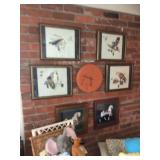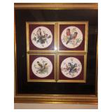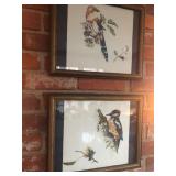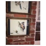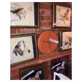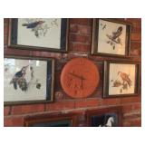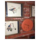 - 6 framed “Woodland Birds” painted on cloth Pago;