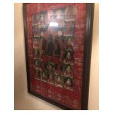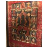 - Vintage silk screen Tibetan Buddhist Thangka seated Budda and Dieties Framed;