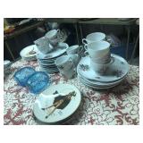 - Service for 8 Vintage Johnson Bros Handley Stoke-on-Trent England “Hunting Country” China with serving pieces;