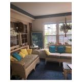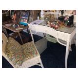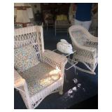 - EARLY 1900’S HEAVY WICKER FURNITURE – ANTIQUE & ALL MATCHING: Long sofa, loveseat, oval table, desk and chair, matching rocker and chair, chaise lounge, and side chairs.