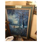 - Large original painting on canvas signed Valdi; vintage Japanese Ukyio-E Woodblock print Utagawa Hiroshige (Yavu lane below Atago woodblock print);