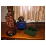 - Wood carvings, boxes, cement squirrels;