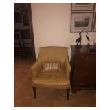 - Down-filled Antique J A Jacob’s custom-covered elegant armchair.