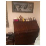 - Antique 3 drawer bureau with original tear-drop pulls.
