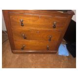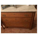 - Antique 3 drawer marble-top dresser with mirror.